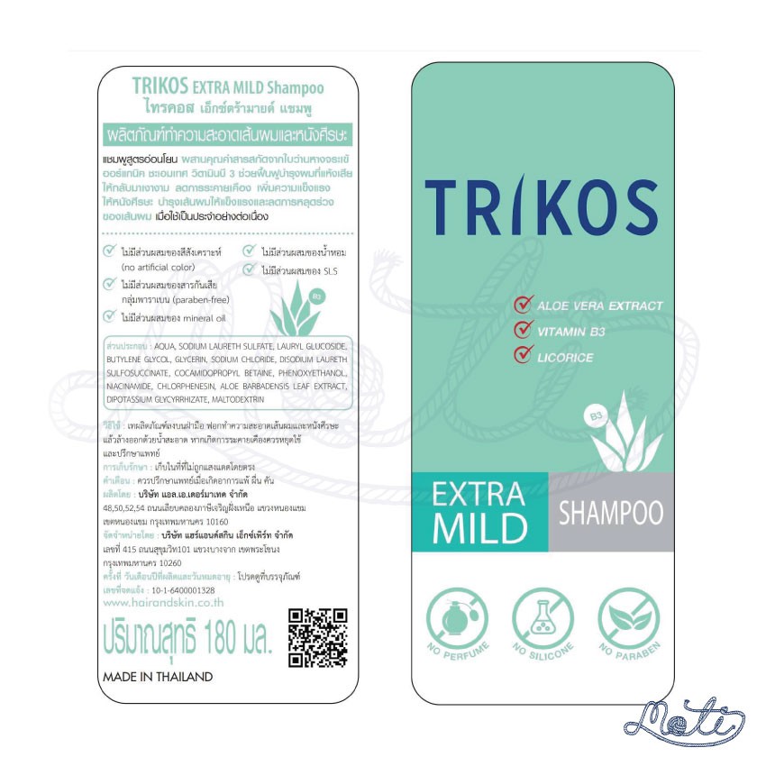 Trikos Extra Mild Shampoo 180ml ช่วยฟื้นฟูบำรุงผมที่แห้งเสียให้เงางาม ลดการหลุดร่วงของเส้นผม