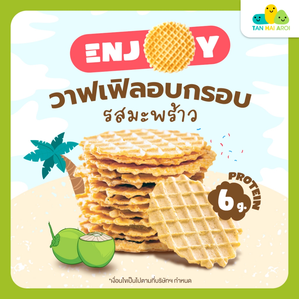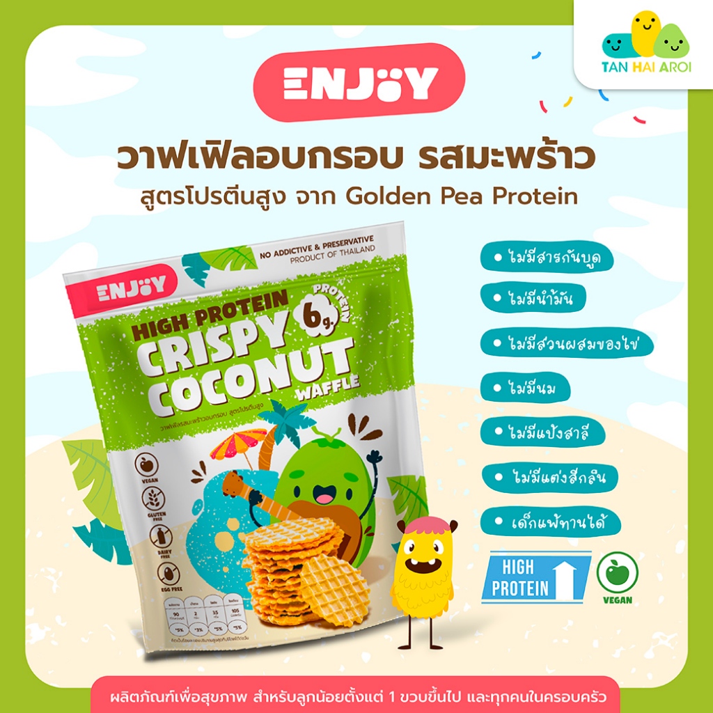 ENJoY วาฟเฟิลอบกรอบ รสมะพร้าว โปรตีนสูงจาก Golden Pea ขนมสำหรับเด็ก (12m+) และทุกคนในครอบครัว