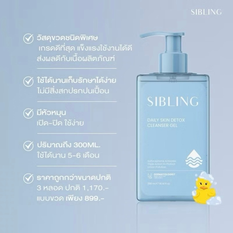 [แถมสติ๊กเกอร์|หมดอายุ6/2026🐣]เจลล้างหน้าซิบบลิ้ง 300ml ขวดใหญ่ Sibling Daily Skin Detox Cleanser Gel ซิบบลิ้ง