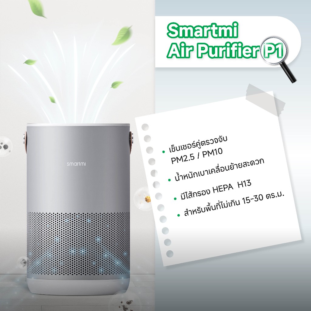 Smartmi Air Purifier P1 -Dark Gray เครื่องฟอกอากาศอัจฉริยะตรวจจับPM 2.5/ PM10สำหรับพื้นที่ 30 ตร.ม. (ประกันศูนย์ไทย 1ปี)