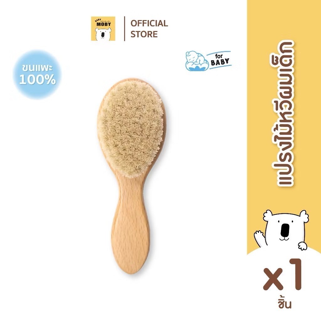 BABY MOBY แปรงหวีไม้ สำหรับทารก ทำจากขนแพะ100% ขนแปรงนุ่มเป็นพิเศษ อ่อนโยนต่อหนังศีรษะทารก
