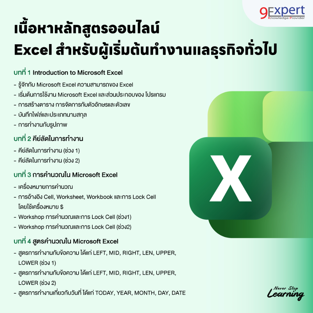 คอร์สออนไลน์ Excel สำหรับผู้เริ่มต้นทำงานและธุรกิจทั่วไป