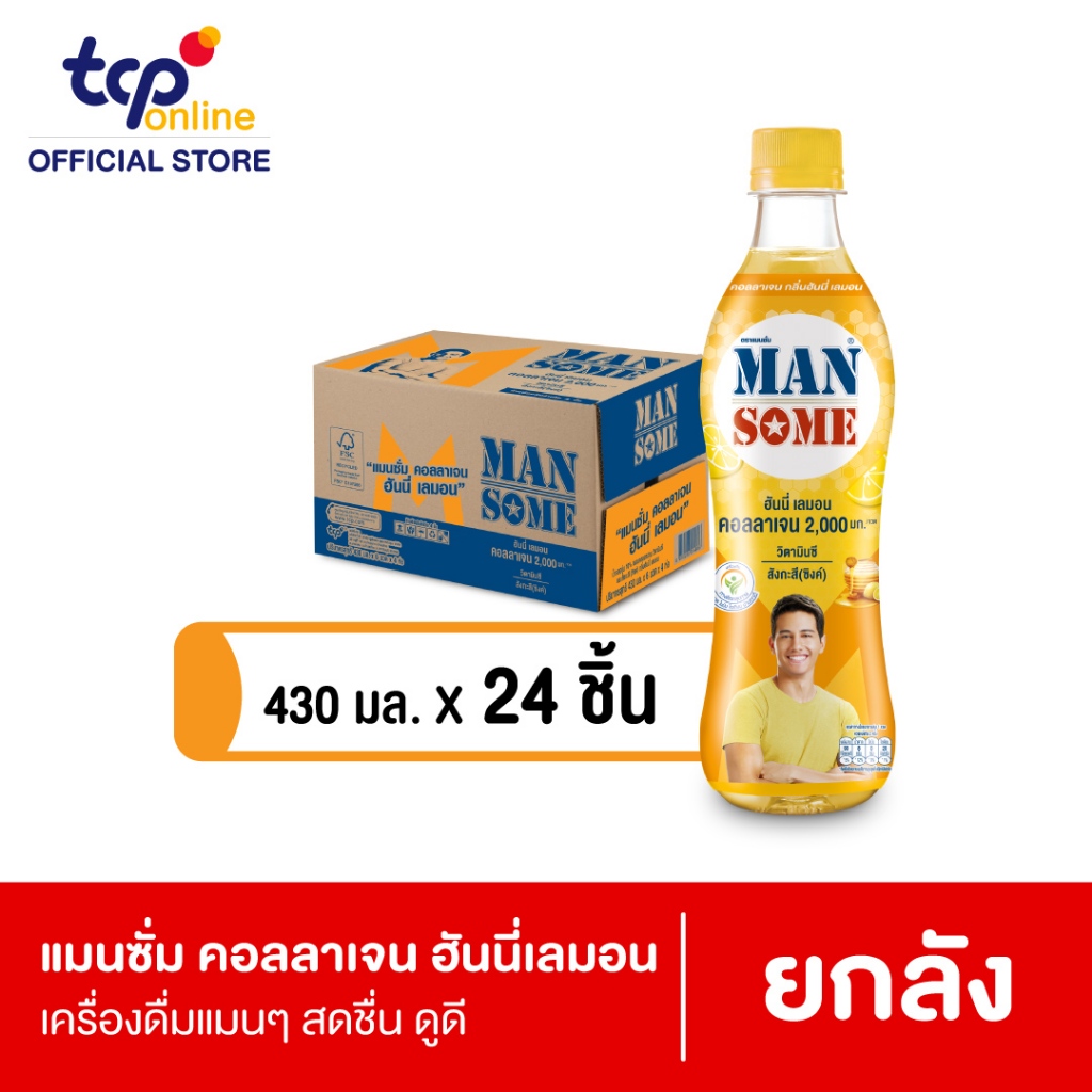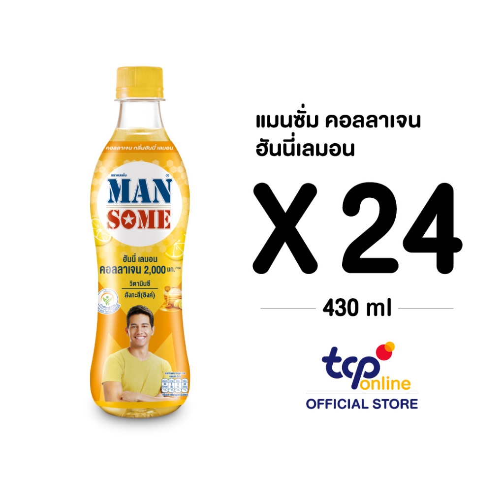 [รวมส่ง] แมนซั่ม คอลลาเจน กลิ่นฮันนี่เลมอน 430 มล. ยกลัง 24 ขวด Mansome 430 ml. Pack 24 (TCP)