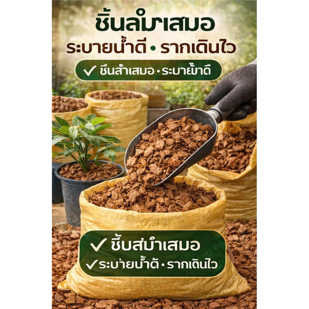 มะพร้าว ล้างสาร แทนนิน 45 ลิตร 15กก.วัสดุปลูกต้นไม้พร้อมใช้คัดคุณภาพ