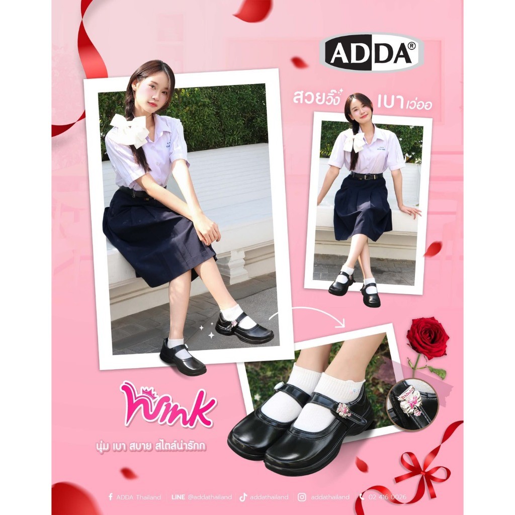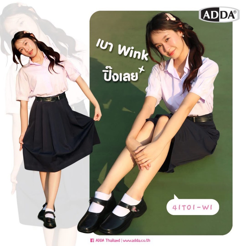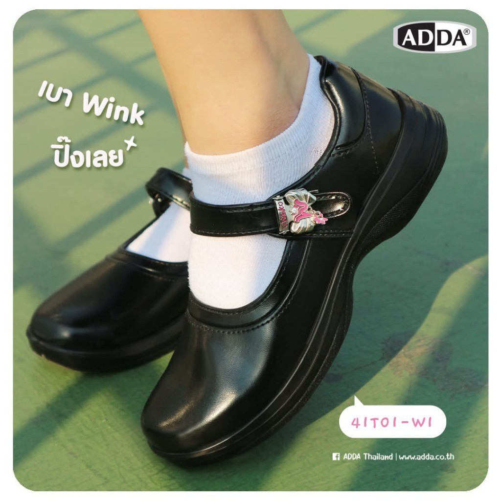 🛵ส่งทันที 2 ชม.🏪💫ADDA รองเท้านักเรียนหญิงหนังดำ รุ่น 41T01 อะไหล่สุดคิ้วท์ 💗🎀 เบา Wink ปิ๊งเลย ไซส์ 34-42