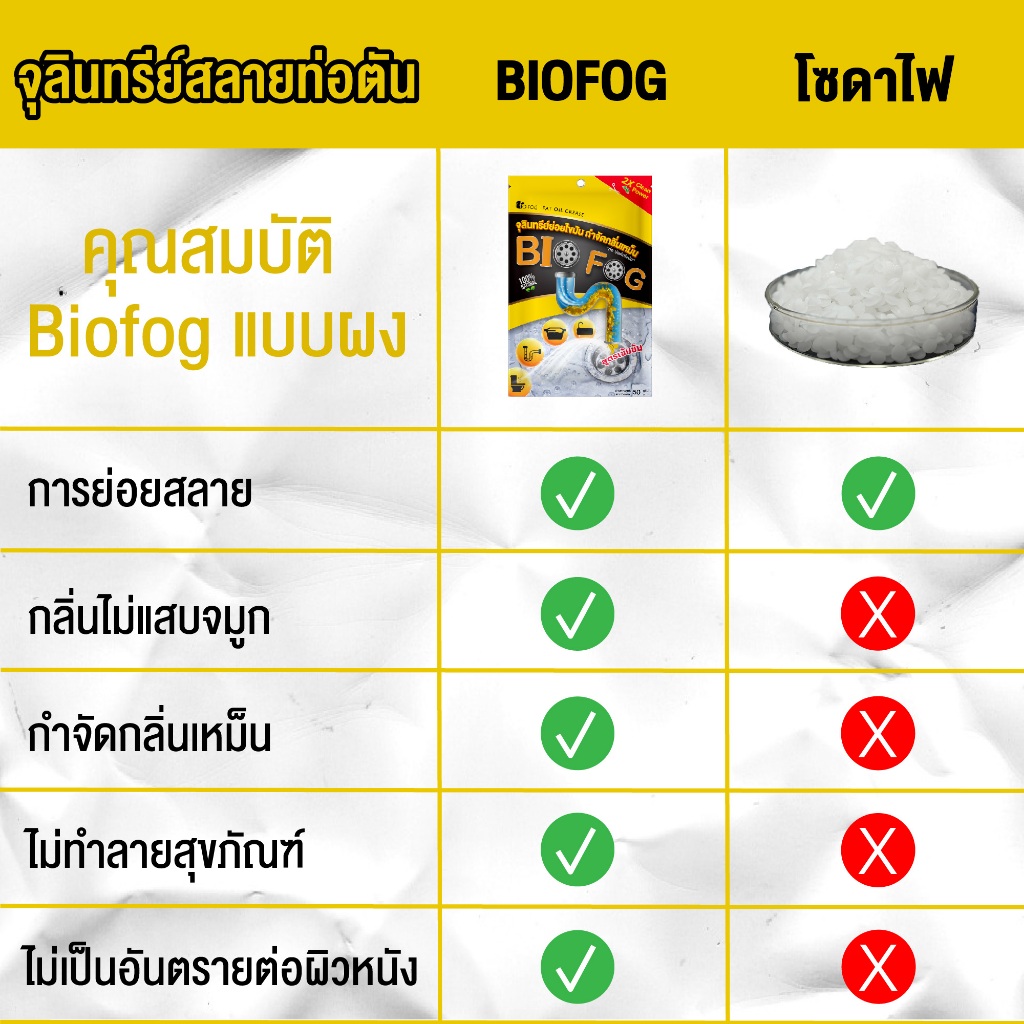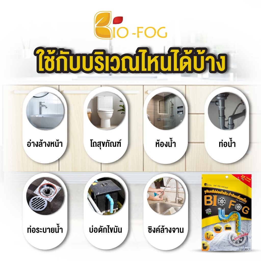 Bio-Fog 50g. ซองเล็ก จุลินทรีย์ย่อยไขมันและกากของเสีย ในอ่างล้างจ้านและห้องน้ำ ดับกลิ่นเหม็น สลายส้วมเต็ม