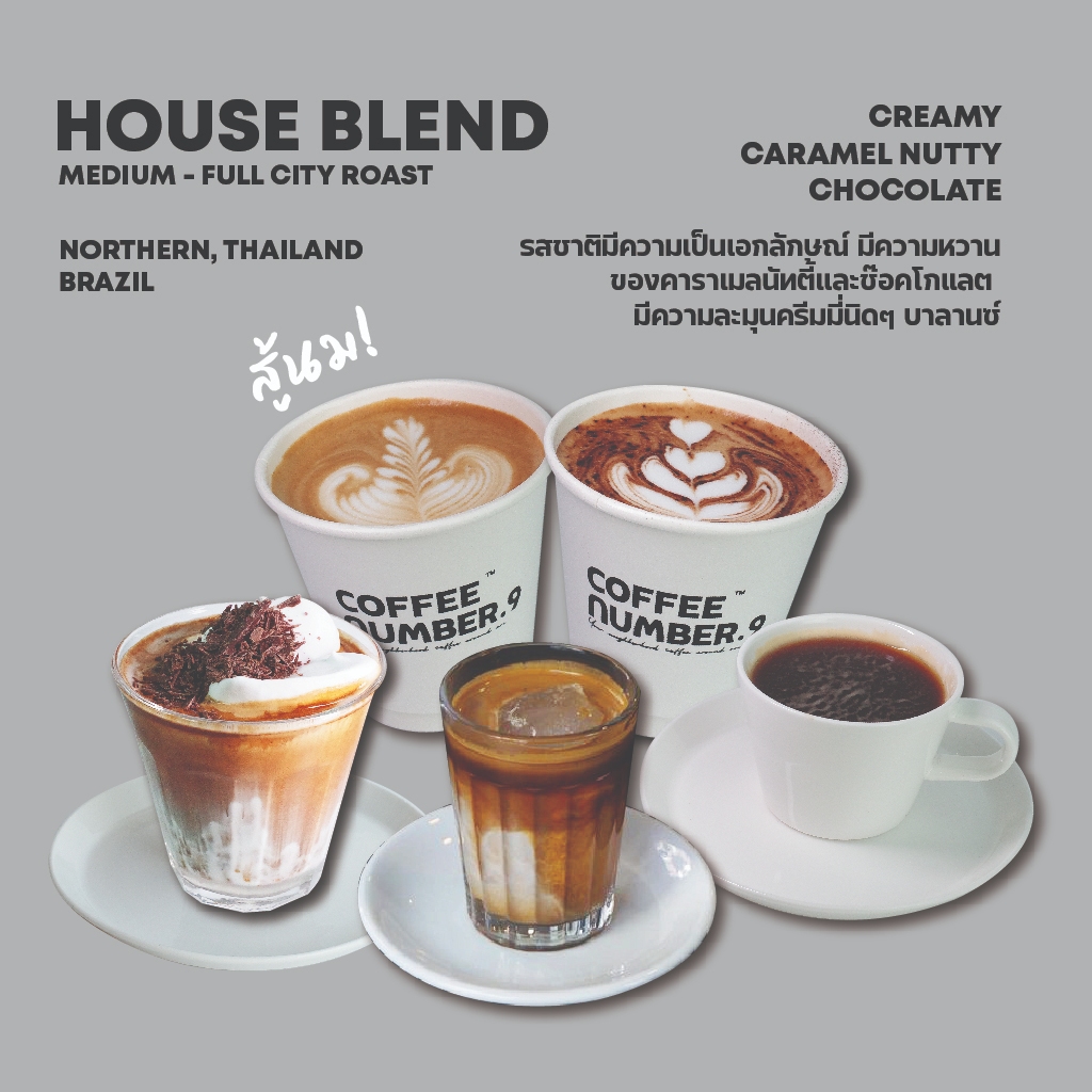 Coffee Number.9 เมล็ดกาแฟคั่ว HOUSE BLEND คั่วกลางผสมคั่วค่อนเข้ม
