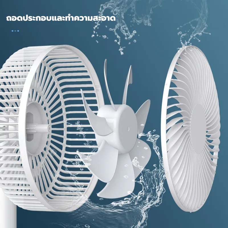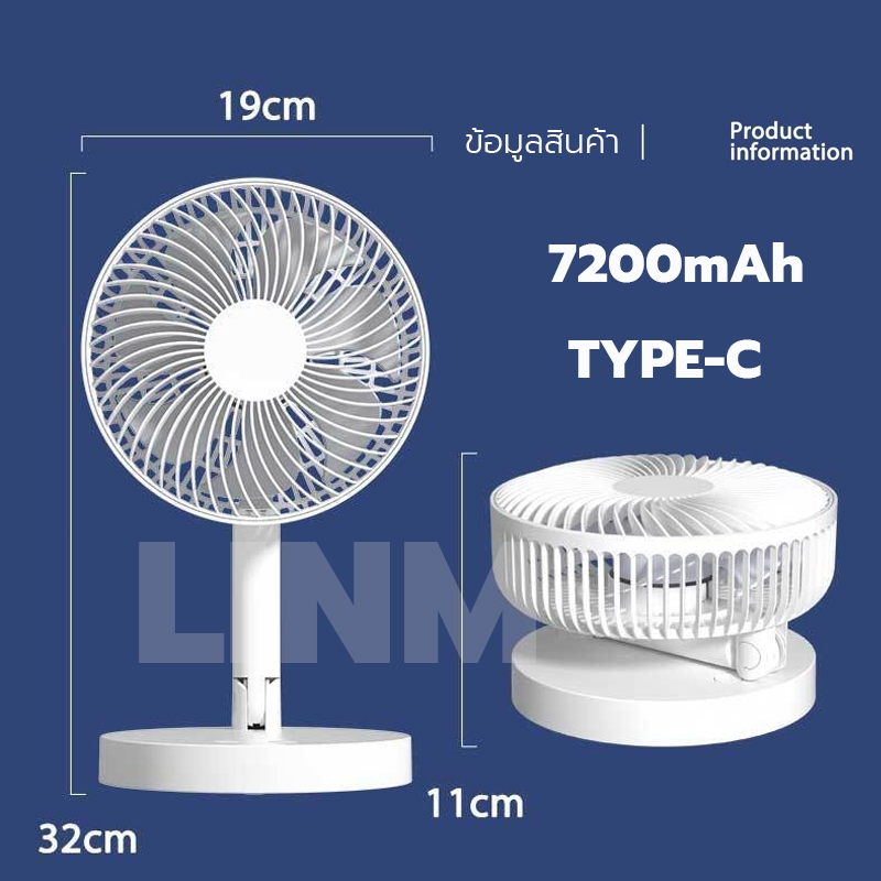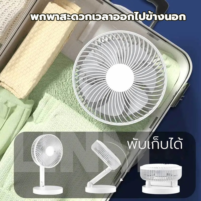 FLON พัดลม 8 นิ้ว พัดลมไร้สาย พัดลมพับเก็บได้ 10000mAh ชาร์จ USB ความเร็วลม 4 ระดับ พัดลมตั้งโต๊ะ