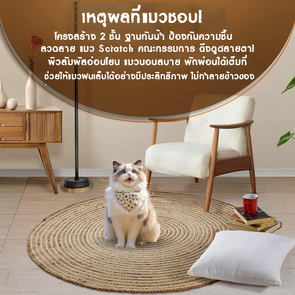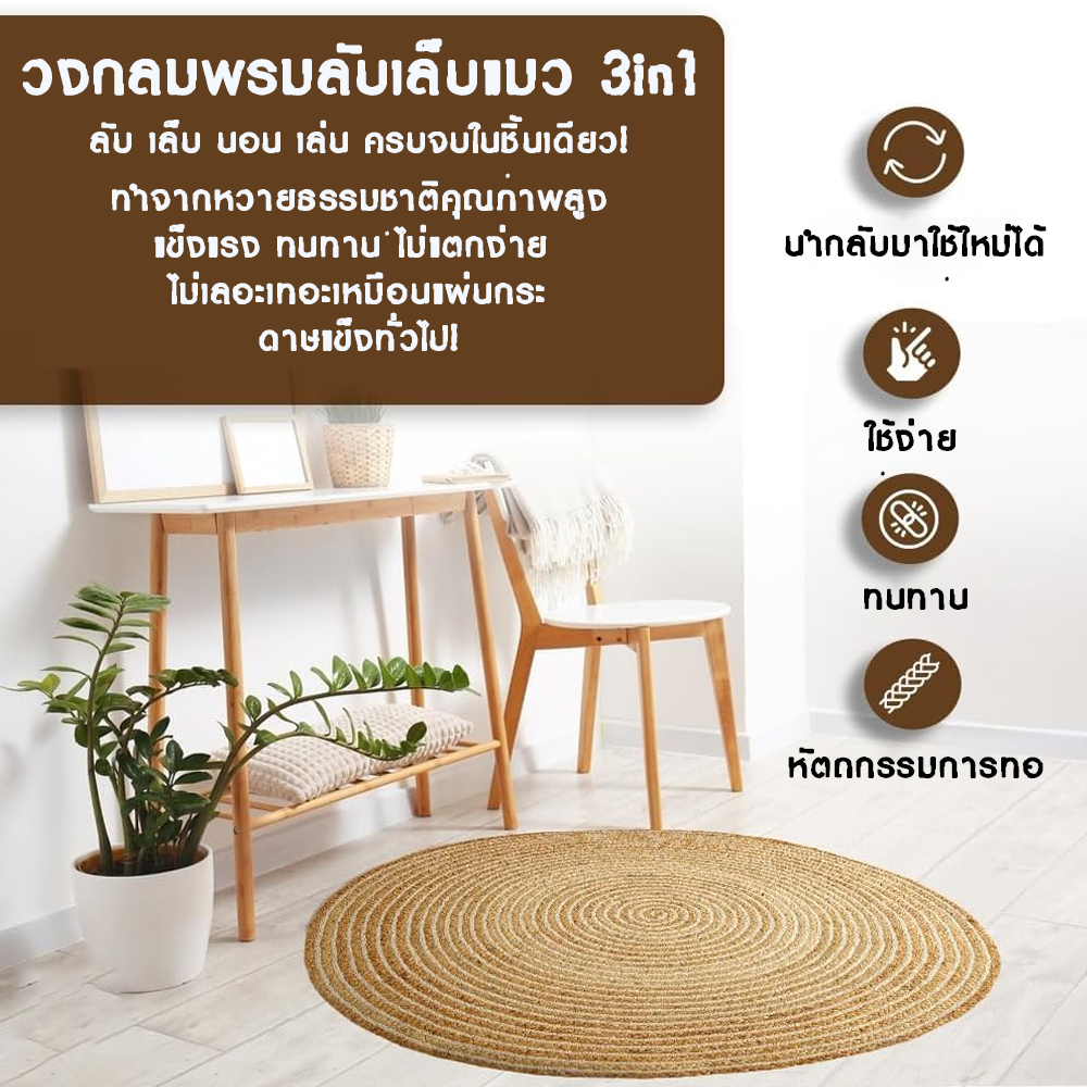 3IN1แผ่นลับเล็บแมว วงกลมพรมลับเล็บแมว ถักทอจากหวาย อเนกประสงค์ ที่นอนแมว ลับ เล็บ นอน เล่น