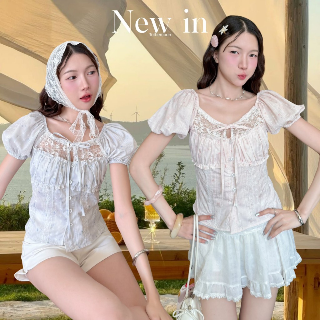 KN.Clothes เสื้อแขนตุ๊กตา กระดุมหน้า แต่งลูกไม้หน้าอก มีเชือกผูกโบว์ด้านหลัง Tothemoon