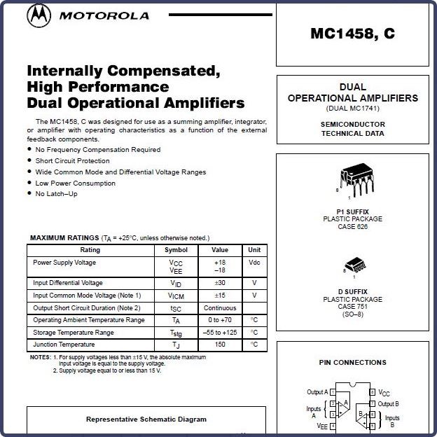 MC1458D MC1458 ( 1458 ) Motorola High-Performance Dual Op-amp NOS