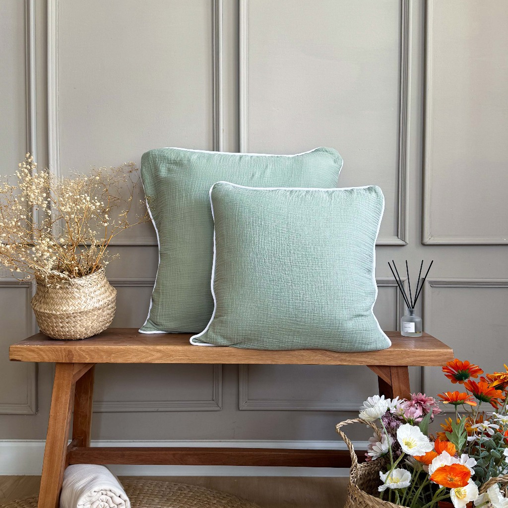 (จับคู่สีได้เอง) ปลอกหมอนอิง Cloud Cotton กุ๊นขอบ สีพื้น Solstice Home ผ้าฝ้ายมีเทกซ์เจอร์ - สไตล์ มินิมอล