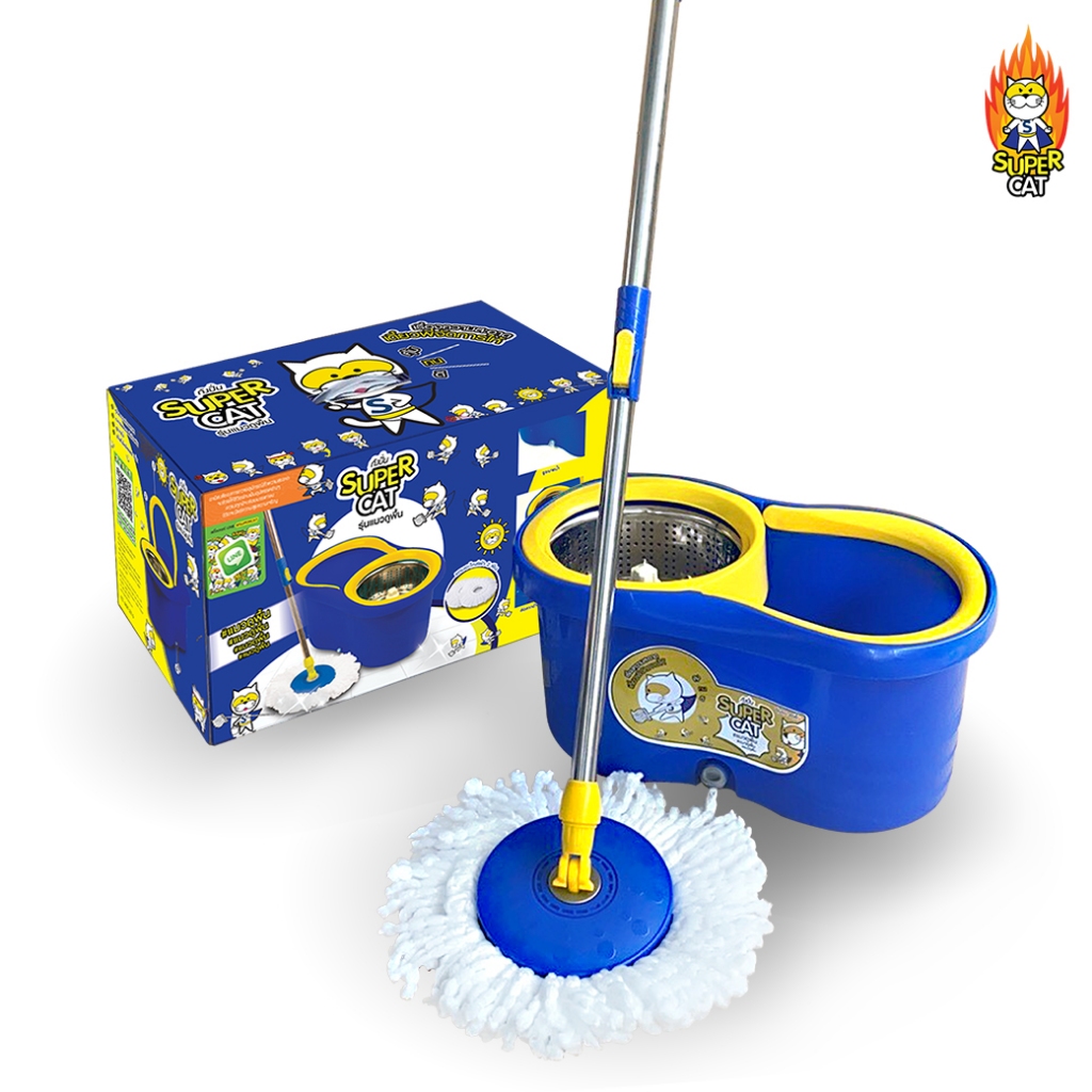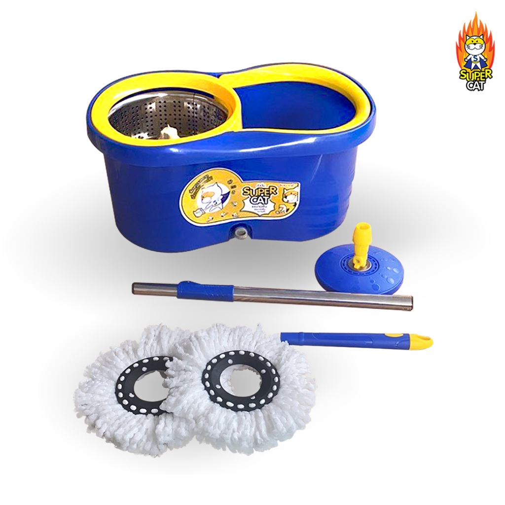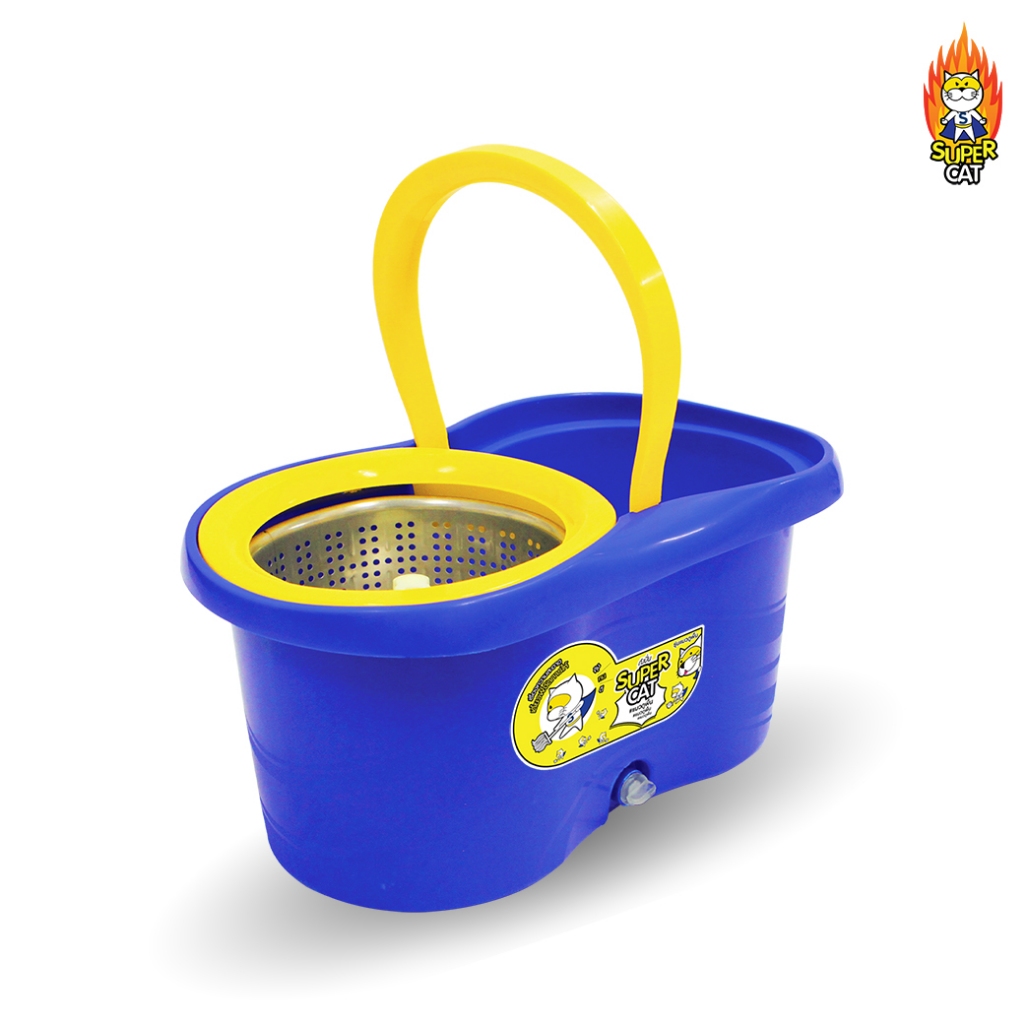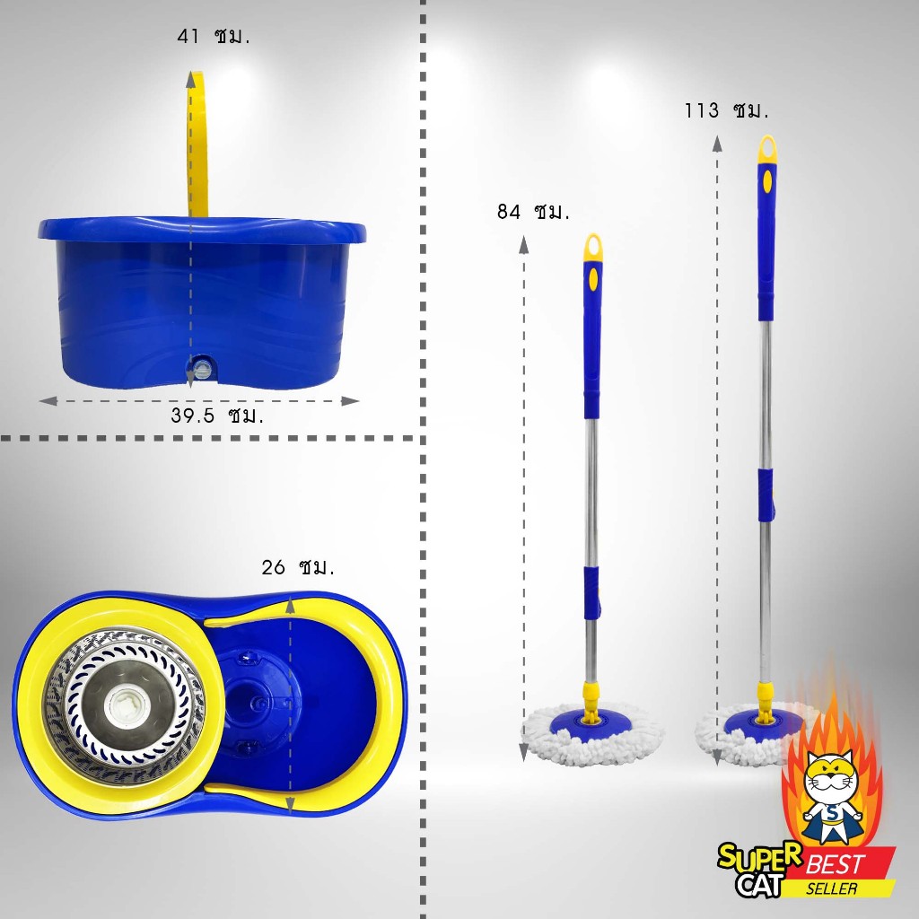 [0313] ถังปั่นรุ่นแมวถูพื้น + ผ้าไมโครไฟเบอร์ 2 ผืน พร้อมล้อลาก