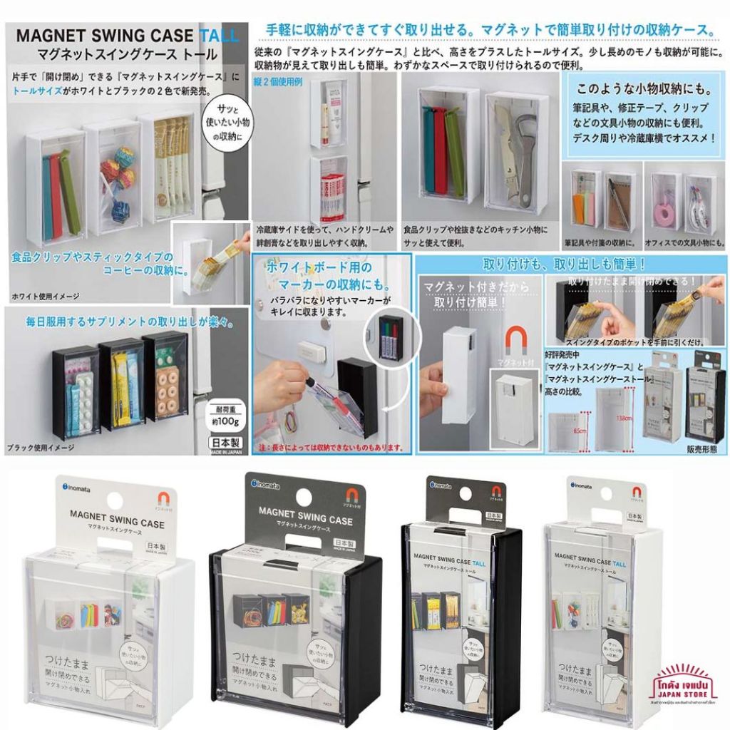 กล่องเก็บของ ที่เก็บอุปกรณ์ Inomata Chemical Magnet Swing Case แบบแม่เหล็ก สามารถติดตู้เย็น เก็บหนังยาง คลิปหนีบ