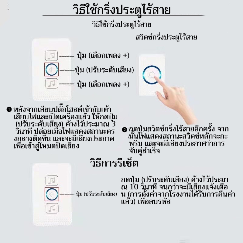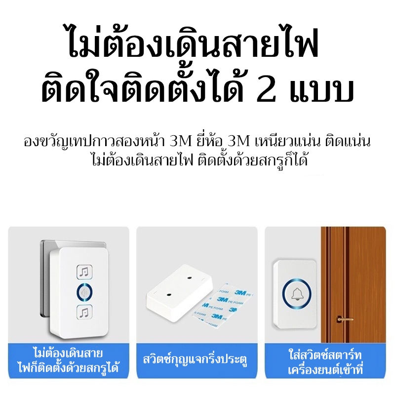 กริ่งประตูไร้สายกันน้ำ ระยะควบคุม 300 เมตร พร้อมไฟ LED 62 ดวง แฟลชสำหรับเรียกเข้าบ้าน