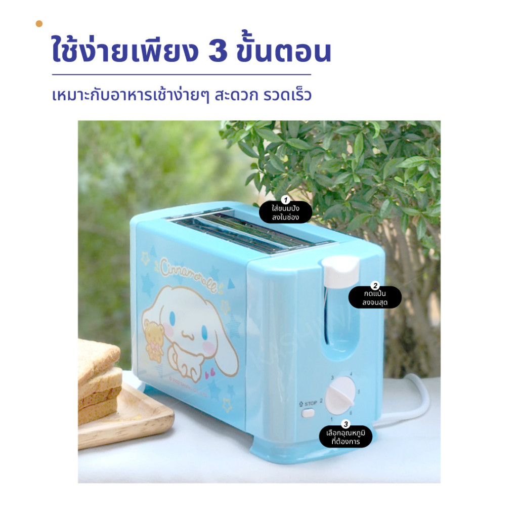 CINNAMOROLL รุ่น (2022) YT-1001/CM เครื่องปิ้งขนมปัง 2 ช่อง เครื่องปิ้ง ขนมปัง กำลังไฟ 700 W ประระดับความร้อนได้ 6 ระดับ รับประกันศูนย์