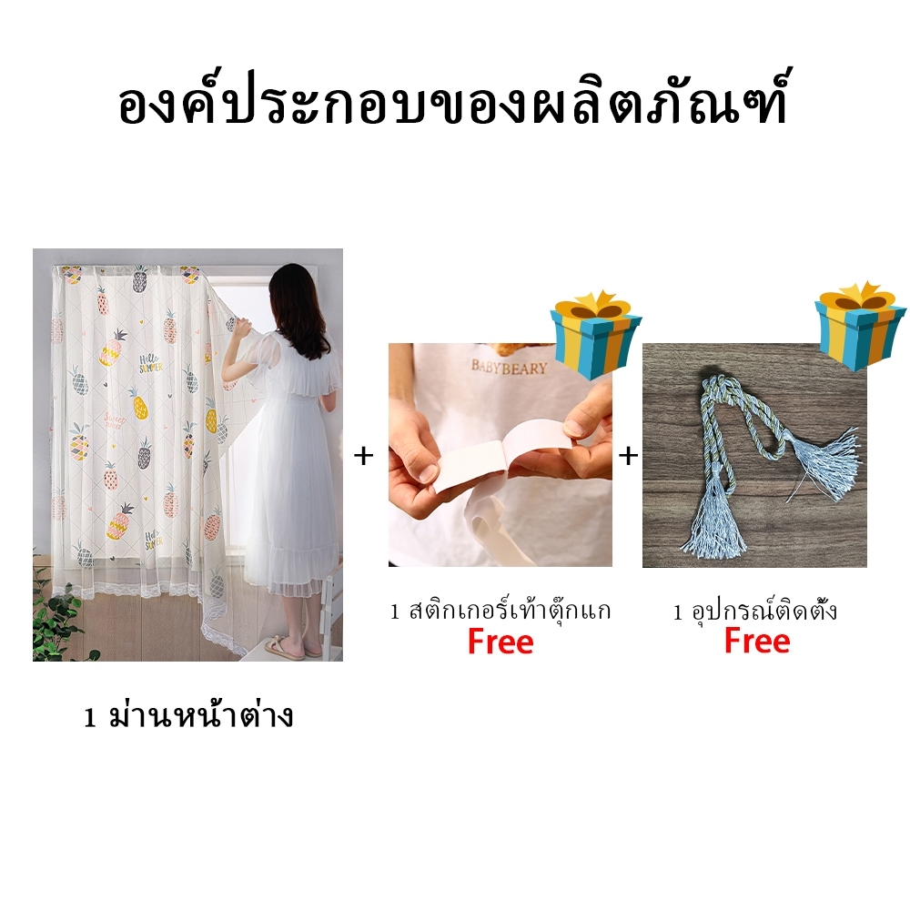FDM ม่าน ผ้าม่านตีนตุ๊กแก ผ้ากั้นห้อง ลายการ์ตูน สไตล์มินิมอล ไม่ต้องเจาะผนัง สีไม่ตก ตั้งค่าเองได้