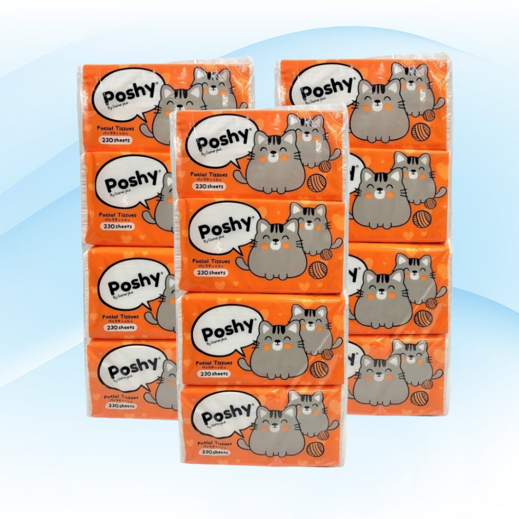 [เซท 3 แพค] Poshy พอชชี่ กระดาษทิชชู่เช็ดหน้า ห่อ240แผ่น หนา2ชั้น แพค4ห่อ