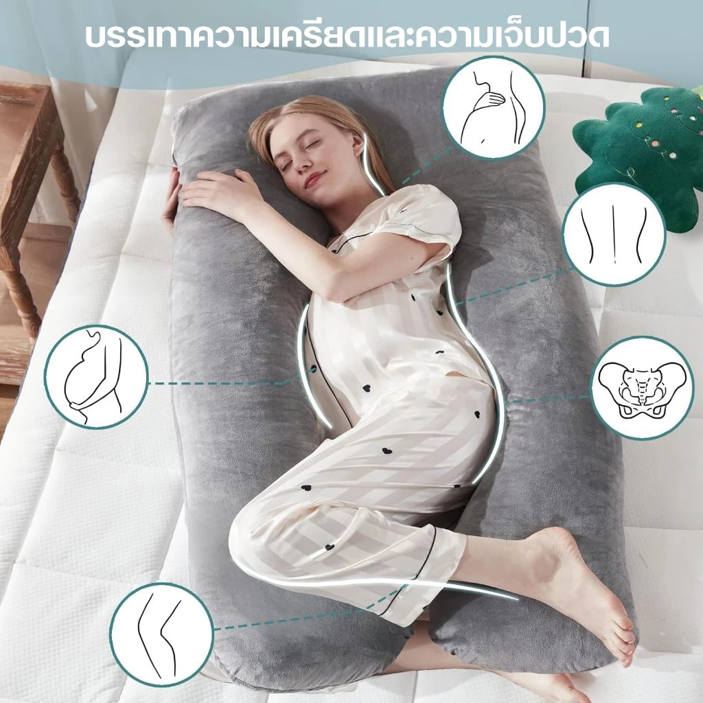 Super หมอนข้างรูปตัว J รองรับศีรษะจนถึงต้นขา คุณแม่ตั้งครรภ์ใช้ได้ หมอนข้างคนท้อง รุ่น Cuddle Pillow (J-Pillow)