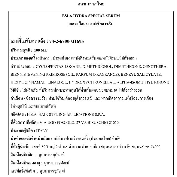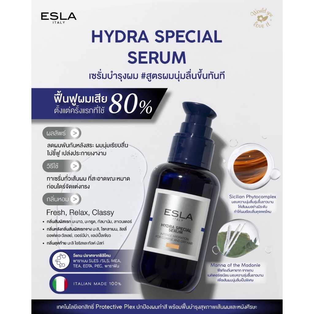 ESLA เอสล่า HYDRA SPECIAL SERUM 100 ML เซรั่มบำรุงเพื่อผมนุ่ม ชุ่มชื้น ประกายเงางาม สำหรับทุกสภาพผม