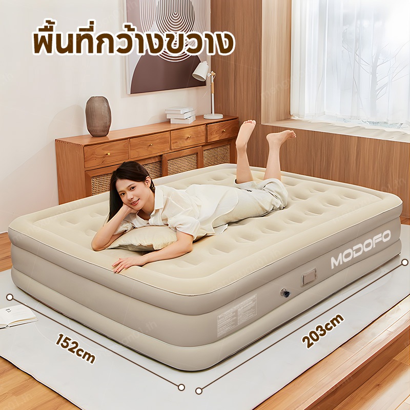 MODOFO เตียงเป่าลมมีพนักพิง ที่นอนเป่าลม 5ฟุต PVC ที่นอนลม (พร้อมปั๊มลมในตัว) ที่นอนแคมป์ปิ้ง