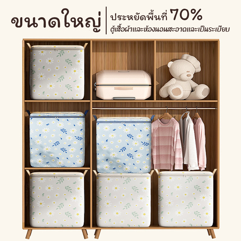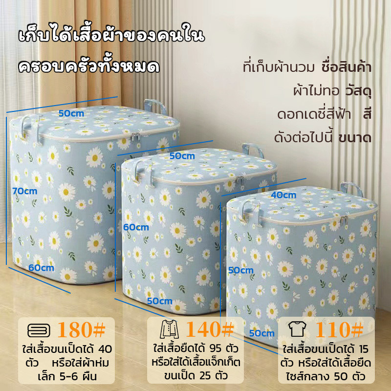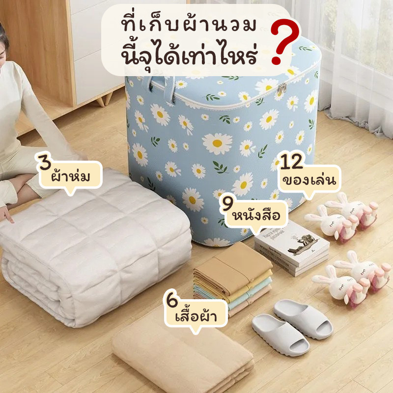 กระเป๋าเก็บของไซส์จัมโบ้ ลายดอกเดซี่ ถุงเก็บผ้าห่มพับได้ ซิปคู่ กันน้ำ กันฝุ่น พร้อมส่ง ราคาพิเศษ
