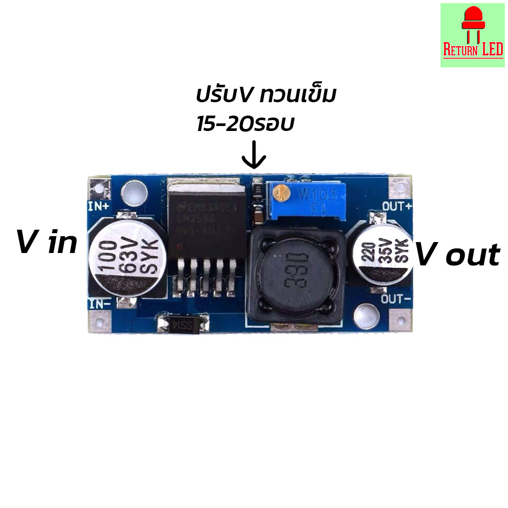 ReturnLED LM2596S DC-DC step-down module.แปลงไฟลงจาก 3.2-40 V เป็น 1.25-35 V ที่สูงสุด 3A