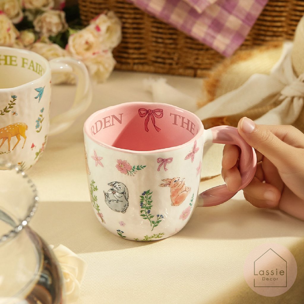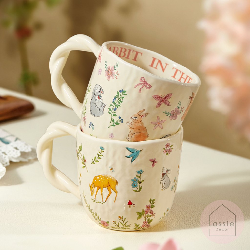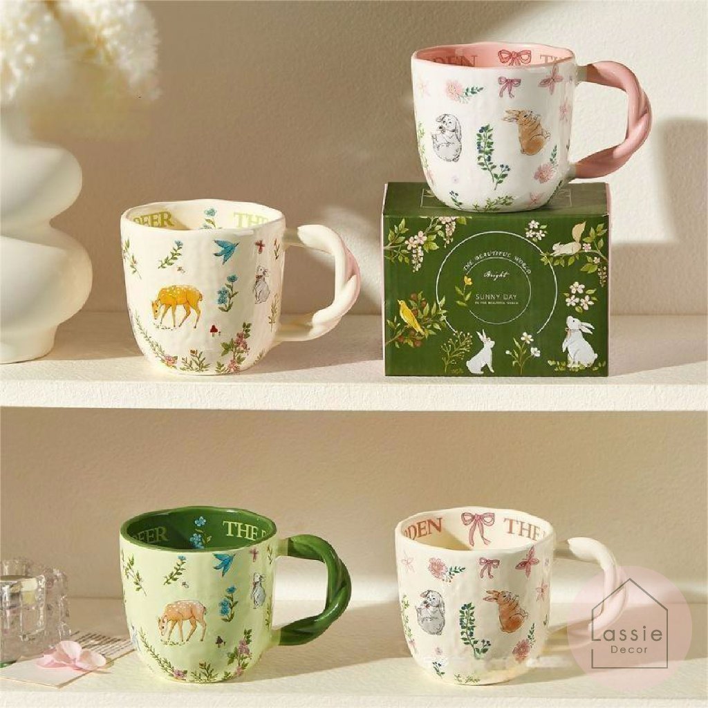 NEW🐇แก้วมัค Woodland Animals แก้วมัคเซรามิกลายสัตว์ป่า🌿ดีไซน์โทนวินเทจ ใส่ร้อน-เย็นได้ 🦌 Lassiedecor