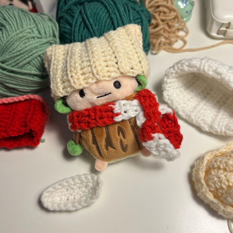 [ ชุดตุ๊กตา ] crochet (cat) beanie 🧶 หมวกหูแมว บินนี่ สำหรับตุ๊กตา 10 cm 15 cm (made to order)