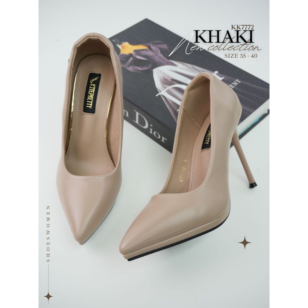K7772 รองเท้าคัทชู หนัง PU หนังนิ่ม ส้นแหลมสูง 4 นิ้ว เสริมหน้า 0.5 นิ้ว
