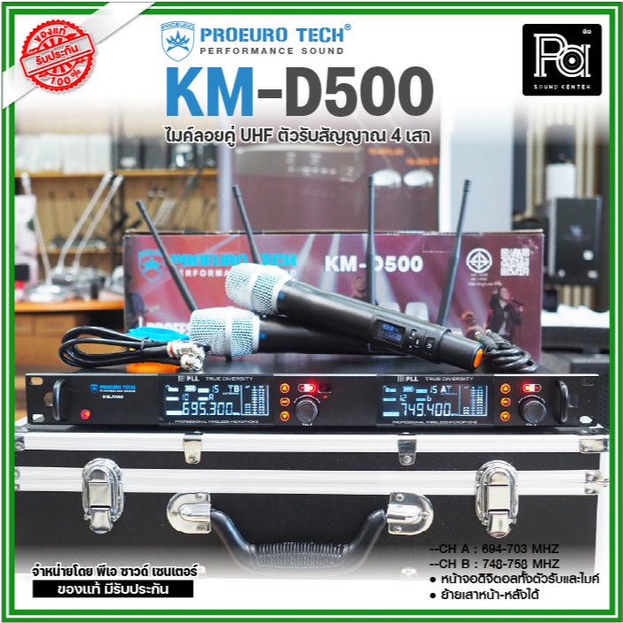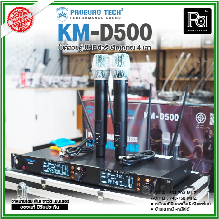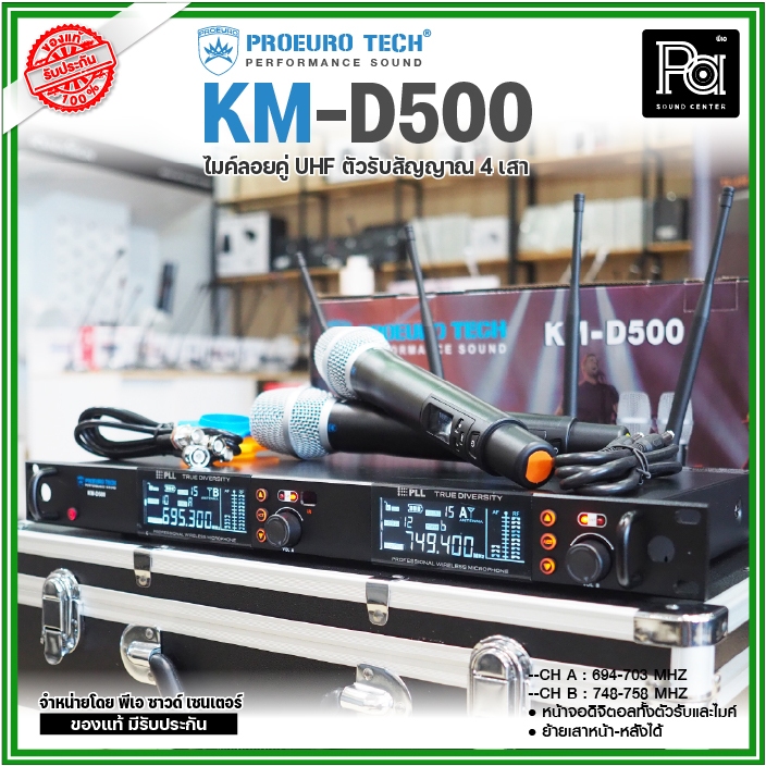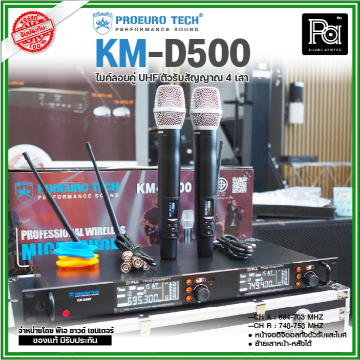 PROEUROTECH KM-D500 ไมค์ลอยคู่ไร้สาย หน้าจอดิจิตอลทั้งตัวรับและไมค์ 4 เสาสัญญาณ ย้ายเสาหน้า-หลังได้