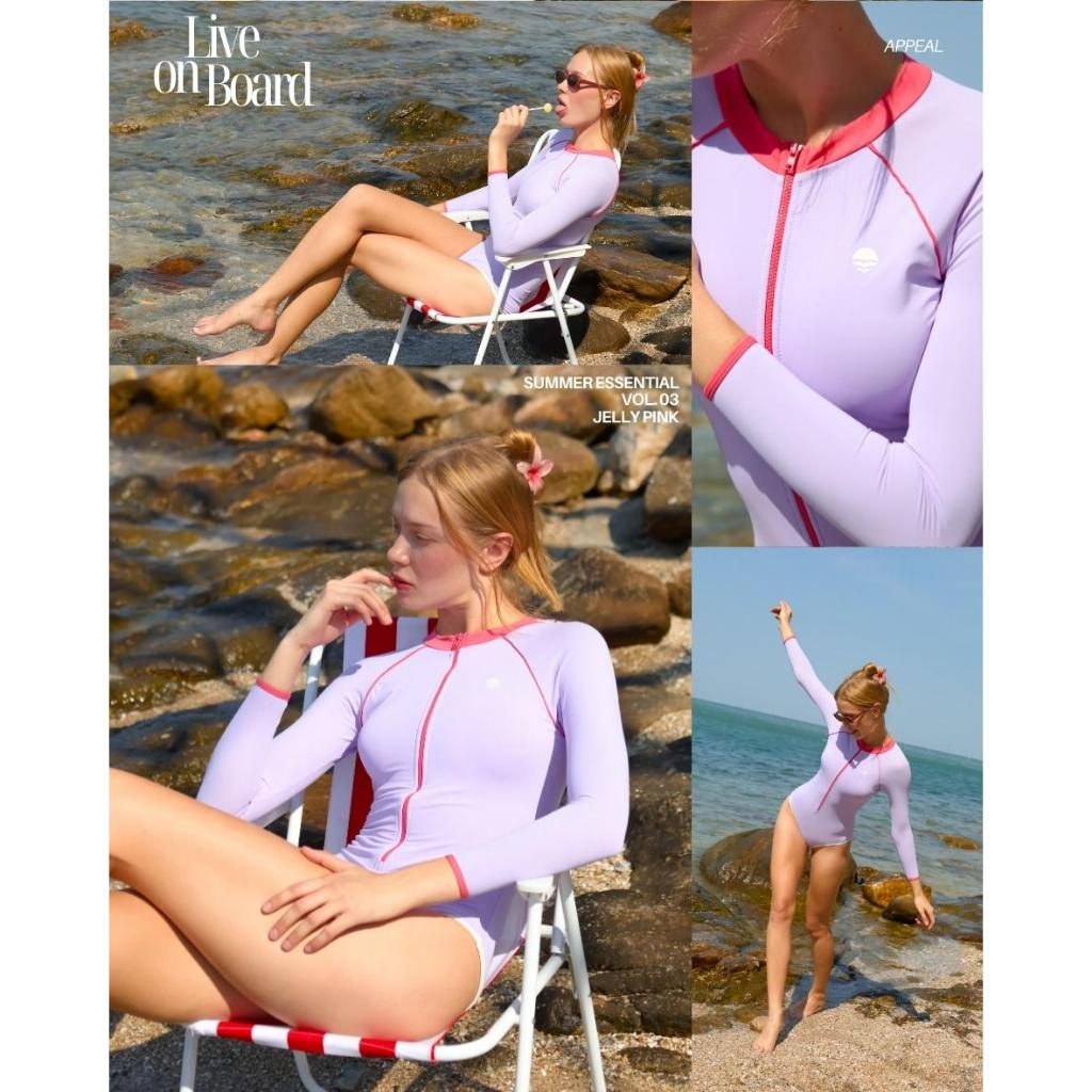 ☀️APPEAL🌊 Live on Board One Piece ชุดว่ายน้ำหญิง แขนยาววันพีซ ชุดว่ายน้ำกันUV มีซิป UPF50+ มีไซส์ P114
