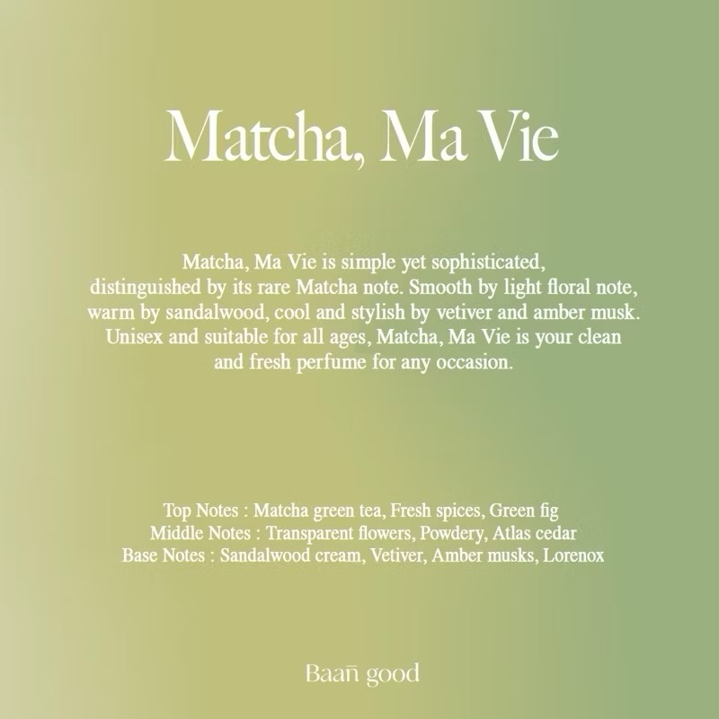 (กดในไลฟ์เหลือ347฿) Matcha, Ma Vie 50/10ml. น้ำหอมกลิ่นมัทฉะ ชาเขียว