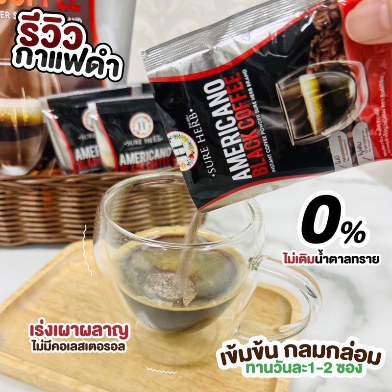 กาแฟดำ อเมริกาโน่ SURE HERB Americano Black Coffee 300g ( 1ห่อ มี20ซอง )