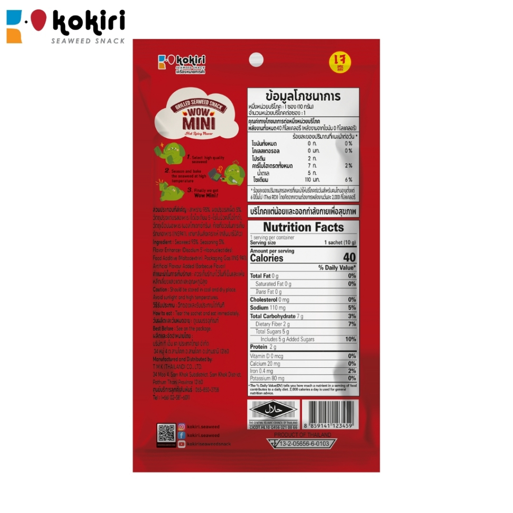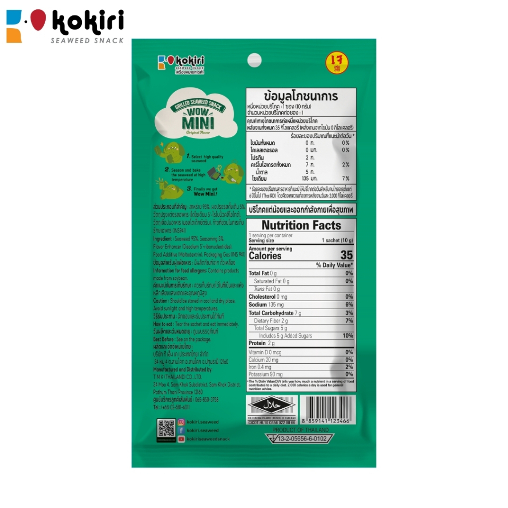 ขนมสาหร่ายม้วนย่างกรอบ ว้าว มินิ ขนาด 10กรัม ตราโคคิริ มี 2 รสชาติ (แบบแพ็ค)