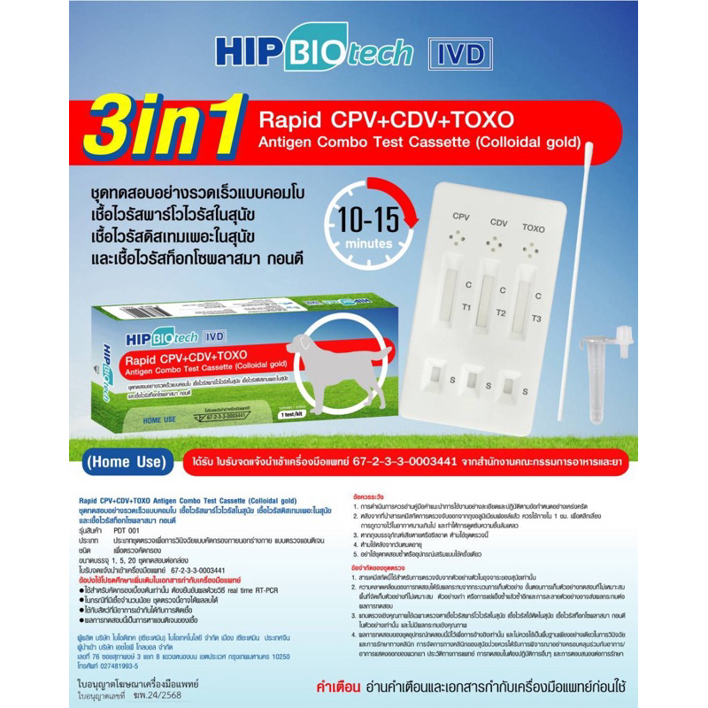 HIP หมา/แมว โรคลำใส้อักเสบ หัดสุนัข โรคขี้แมว CPV+CDV+TOXO ชุดตรวจเชื้อไวรัสสุนัขและแมว ชุดตรวจสัตว์เลี้ยง