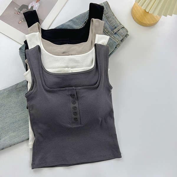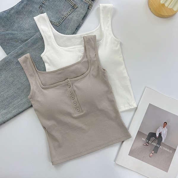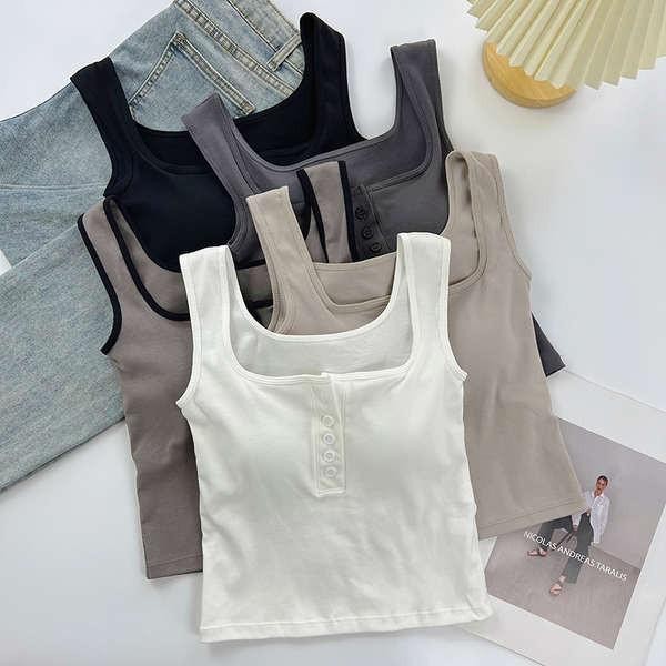 #422 เสื้อสายเดี่ยว เปิดหลังมีบราในตัว ไม่ต้องใส่เสื้อใน Built-in Bra camisole สวมใส่สบาย ผ้าดี