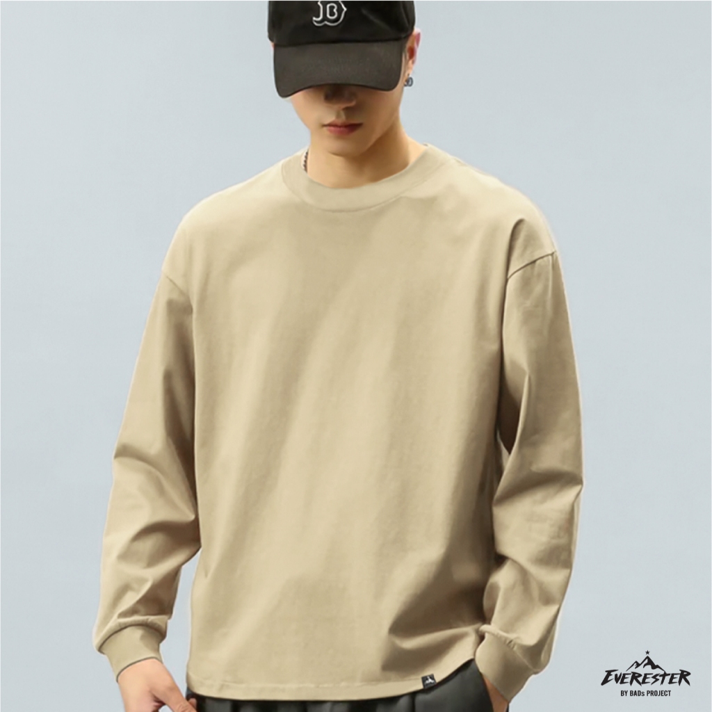 EVERESTER เสื้อแขนยาว Oversize ( แขนจั้ม ) Cotton 100% เสื้อยืด สีเบจ เสื้อแขนยาวผู้ชาย OLF