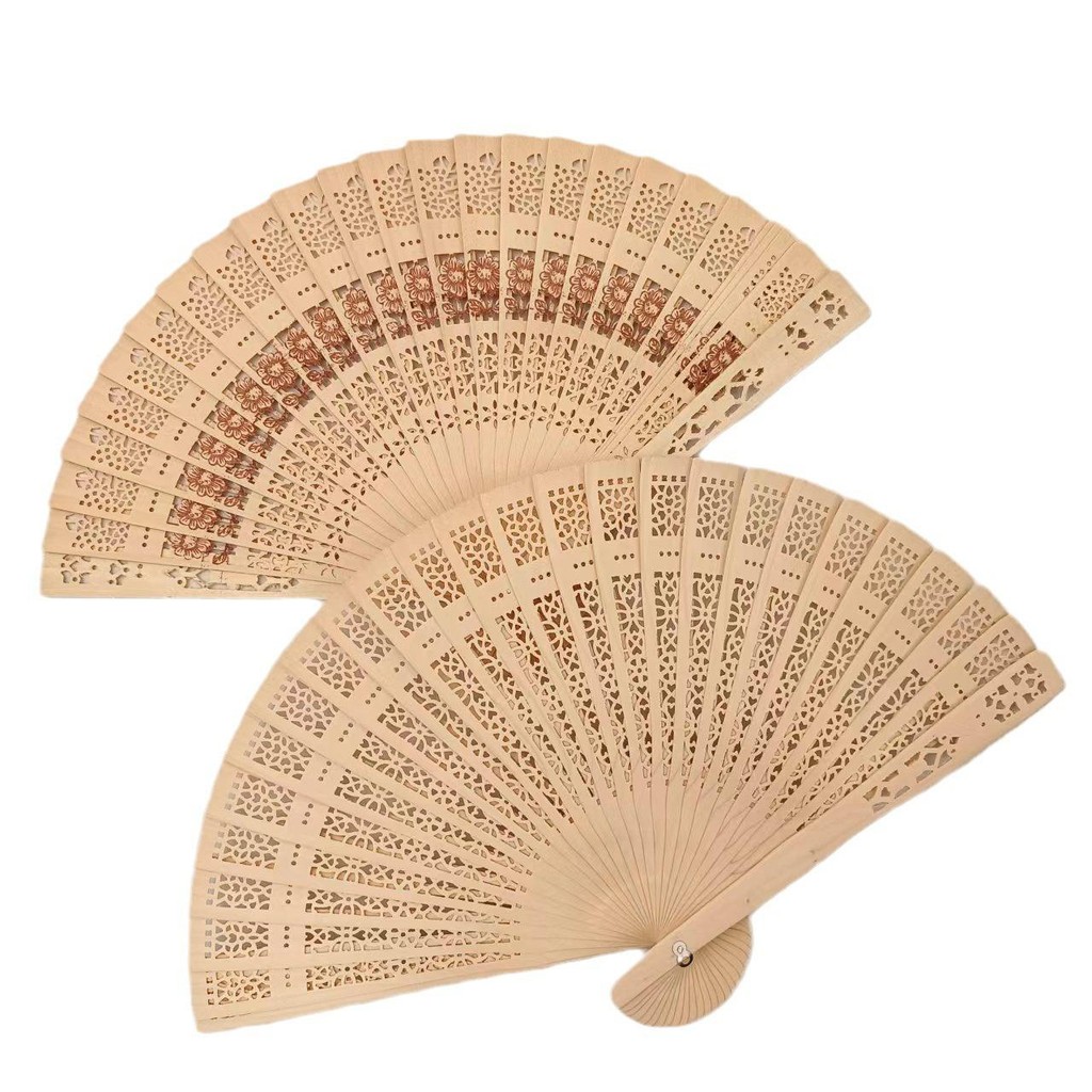 พัดไม้หอมทำด้วยมือสไตล์จีนสำหรับผู้หญิงพัดไม้จันทน์พัดไม้จันทน์พัดแบบพับสไตล์โบราณพัดผู้หญิงคลาสสิกฉลุลายพกติดตัวได้