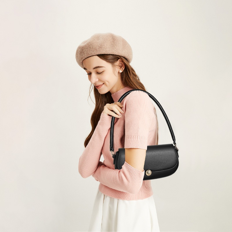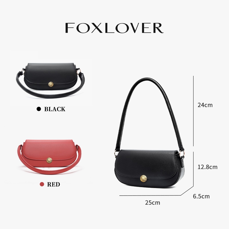 FOXLOVER แฟชั่นใหม่ 2026 กระเป๋าสะพายไหล่เดี่ยวสีดำ เบาสบาย ใส่เดินช้อปปิ้ง แมทช์ง่าย ดีไซน์เก๋ สำหรับผู้หญิง