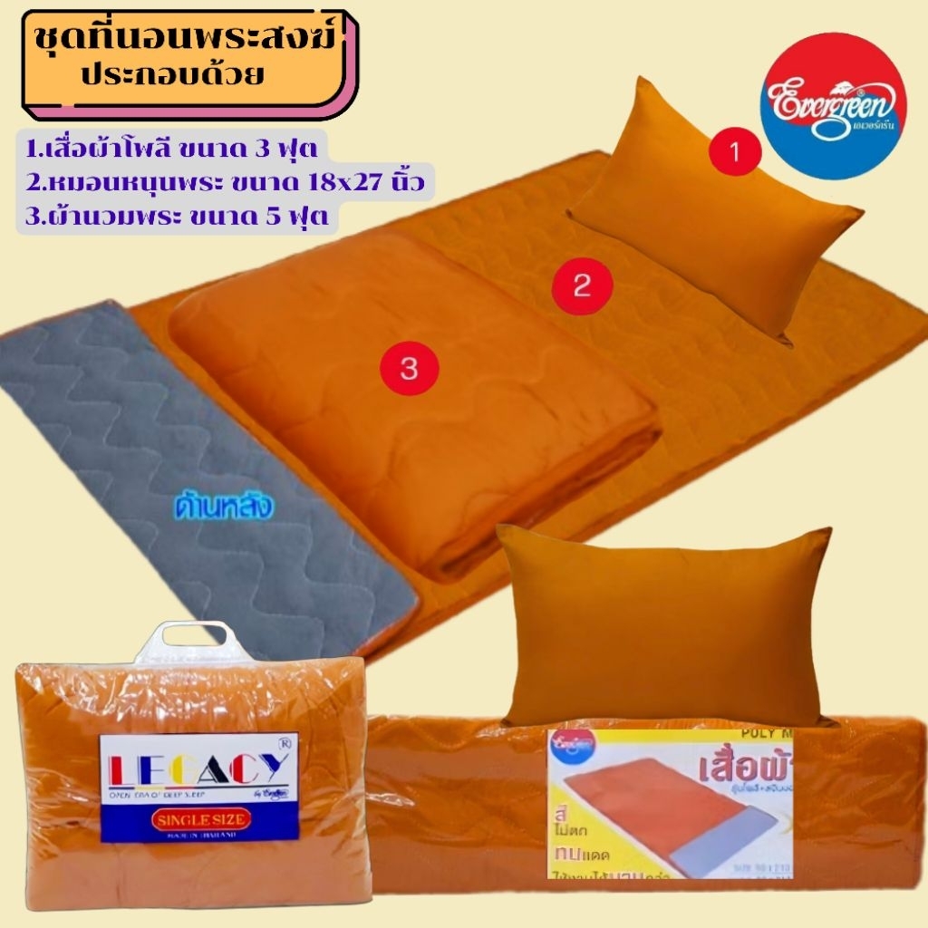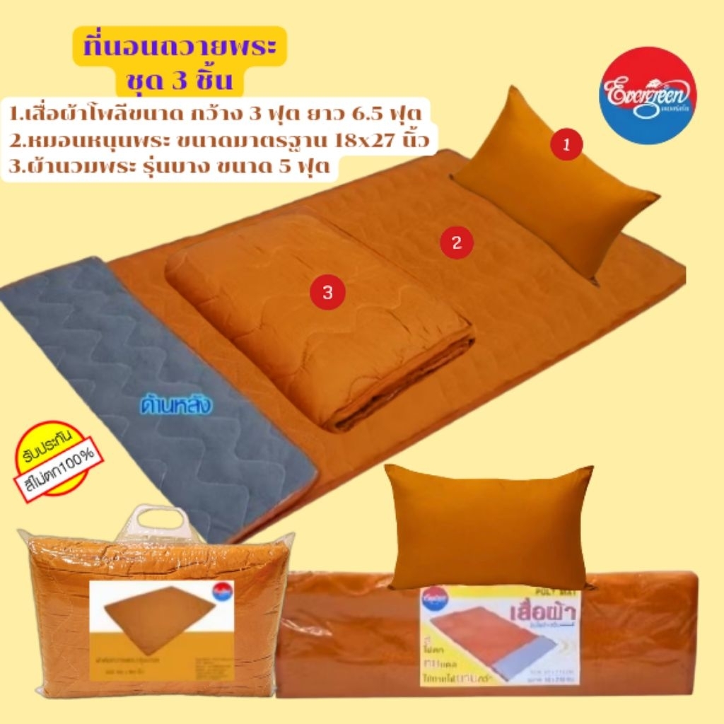 #ชุดที่นอนสำหรับพระภิกษุสงฆ์(เสื่่อโพลีขนาด3ฟุต+หมอนใบใหญ่18X27นิ้ว+ผ้าห่มนวมขนาด5ฟุต)ราคาสุดประหยัด