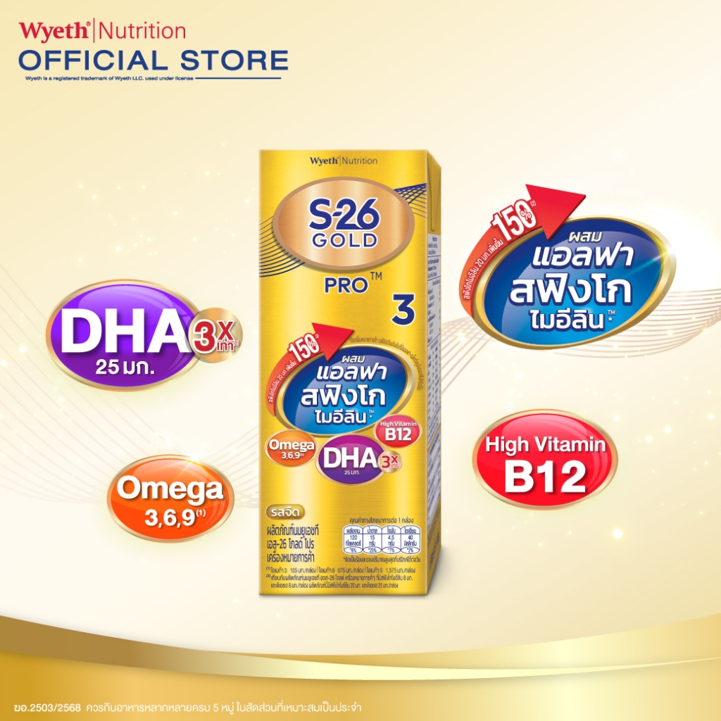 นม UHT สำหรับเด็กเรียนรู้ที่สารอาหารครบถ้วนมากครับ โดยเฉพาะสฟิงโกไมอีลินและ DHA ที่ช่วยบำรุงสมอง ลูกดื่มง่ายรสชาติอร่อย มั่นใจในมาตรฐาน S-26 ที่เป็นผู้นำด้านนมผงระดับโลก