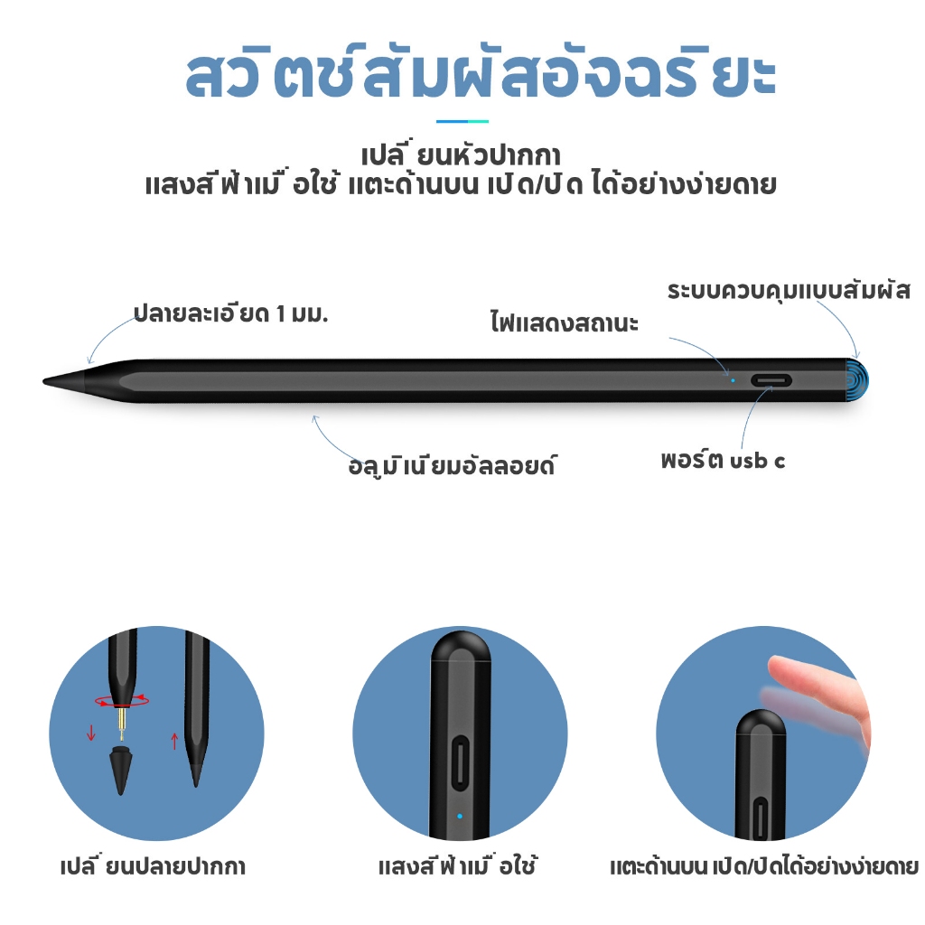 Jamjake ปากกาไอแพด ราคาถูก สามารถวางมือบนหน้าจอได้ Stylus Pen for Air6 Air5 Gen10 Mini6 Pro11 Pro13
