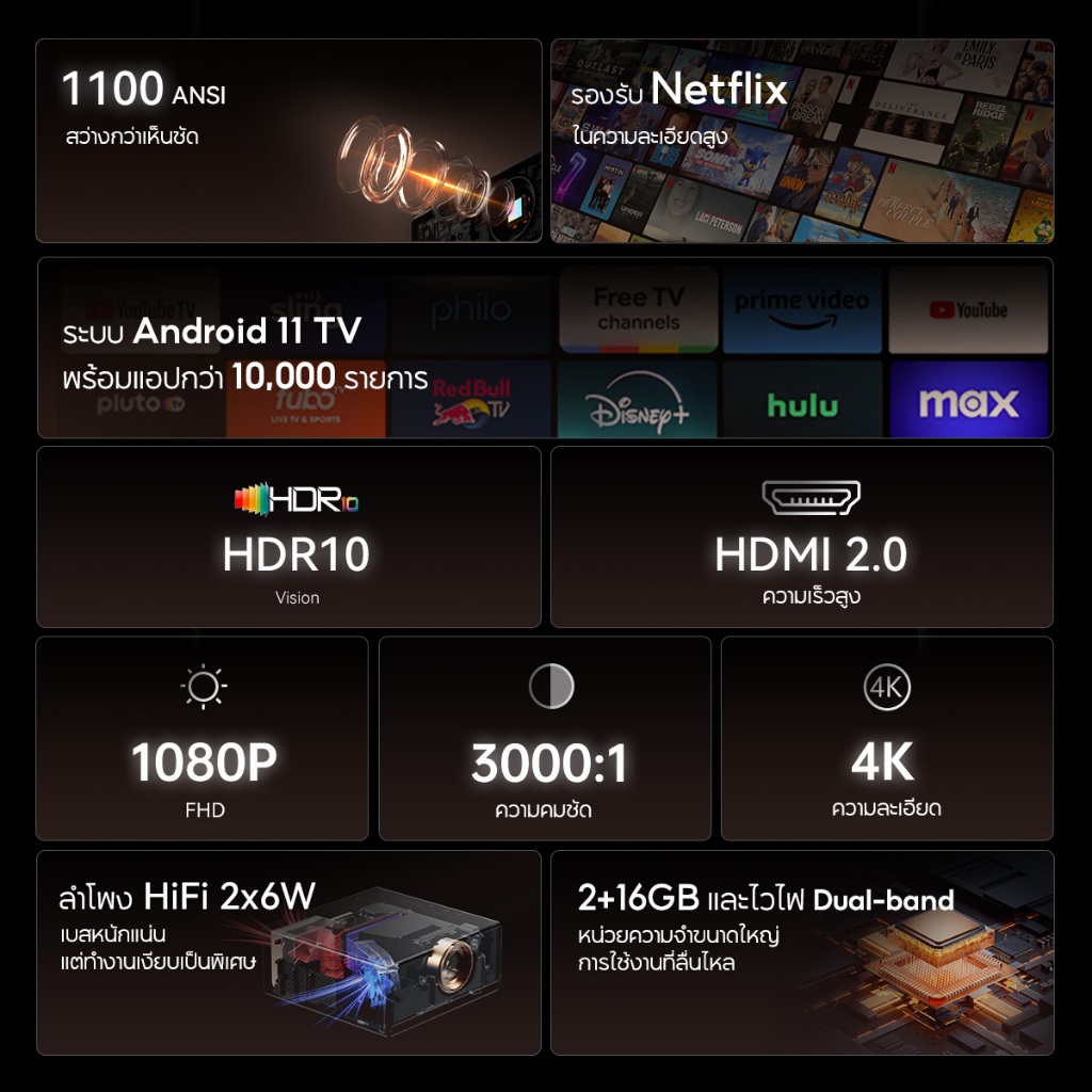 [New] Wanbo X5 Pro Projector Full HD 4K โปรเจคเตอร์ ความสว่างสูง 1100ANSI Built-In Google TV