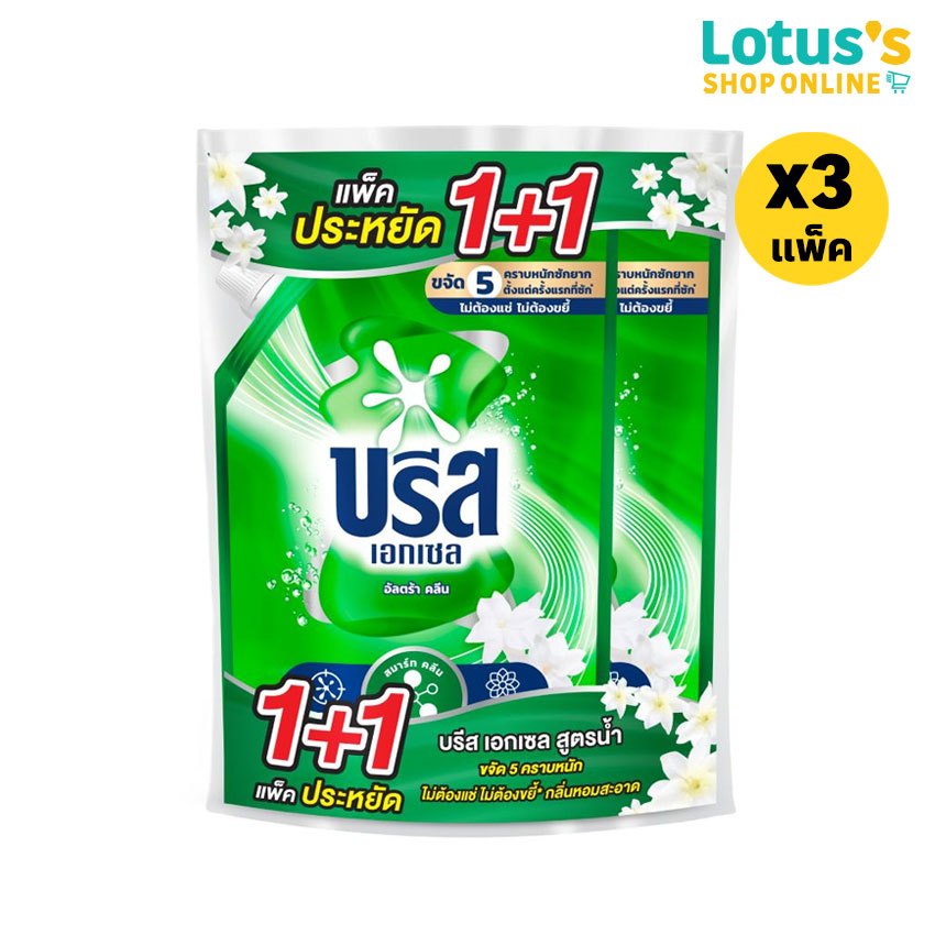 [ทั้งหมด 3 แพ็ค] บรีส เอกเซล น้ำยาซักผ้า สูตรเข้มข้น ขนาด 1200/1250 มล.BREEZE LIQUID LAUNDRY DETERGENT 1200/1250 ML.