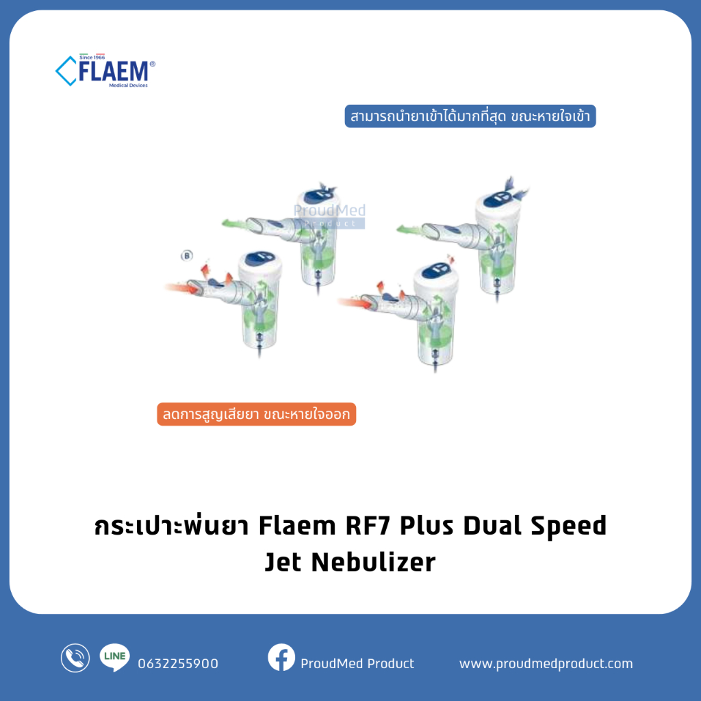 FLAEM กระเปาะพ่นยา RF7 Plus Dual Speed Jet Nebulizer เลือกโหมดพ่นเร็วหรือมาตรฐานได้