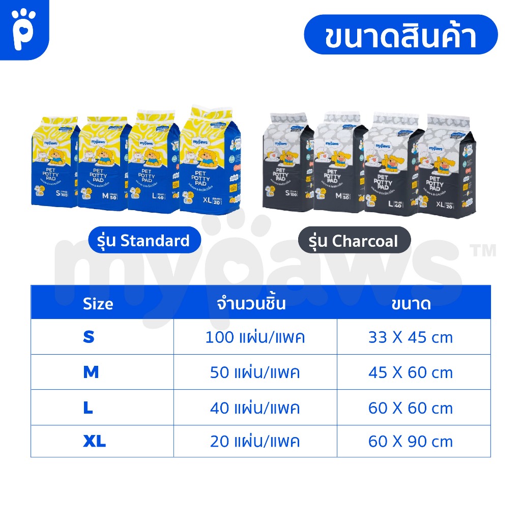 My Paws แผ่นรองฉี่ แผ่นรองฉี่สุนัข ฝึกขับถ่าย ซึมซับดี ดับกลิ่นเหม็นอย่างมีประสิทธิภาพ รุ่นStandard,Charcoal