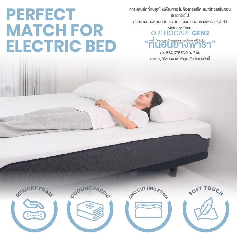 Ergotrend ที่นอนเย็นยางพาราแท้ ผสานเมมโมรี่โฟมใช้กับเตียงไฟฟ้าได้ รุ่นออร์โธแคร์เจนทู orthocare gen2
