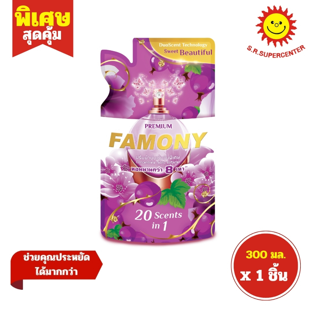 [ 1ชิ้น ] Famony ฟาโมนี่ น้ำยาปรับผ้านุ่มเข้มข้นพิเศษ ขนาด 300 มล. (1ชิ้น) คละสูตร