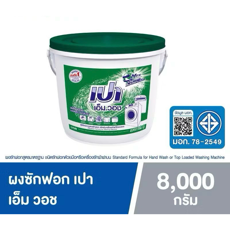 Pao M Wash ผงซักฟอก เปา เอ็ม วอช สำหรับ เครื่องซักผ้า ฝาบน และ ฝาหน้า ถัง 8,000 ก. ผงซักผ้าเปาแบบถัง